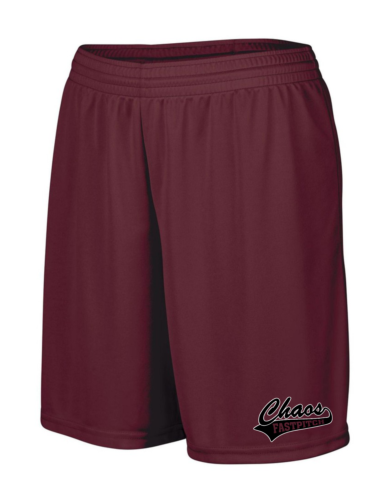 Designed for comfort and style, these Ladies Shorts feature a longer length for enhanced coverage and confidence. Available in sophisticated black or rich maroon, each pair showcases the distinctive Chaos logo. Crafted from 100% polyester, they offer durability, moisture-wicking properties, and easy care. Perfect for active lifestyles or casual wear.